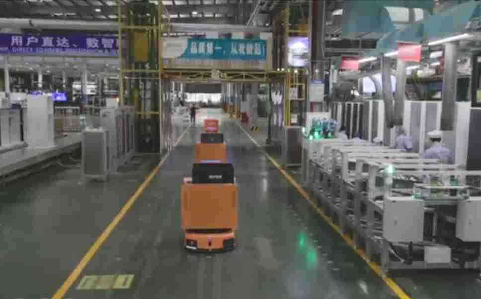 为车载冰箱物流配送打造的智能解决方案,,,包含产中物流通过潜伏举升AMR搬运至线边,,产后成品物流智能仓储,,流程包含产中物流智能齐套入库,,,,线边安灯叫料AMR智能配送至线边,,,,成品入库、、、出库,,,通过无人堆高车机器人,,,,智能仓储管理替代人工作业管理,,,实现更高存储、、更高效率、、、更具柔性化的解决方案。。。